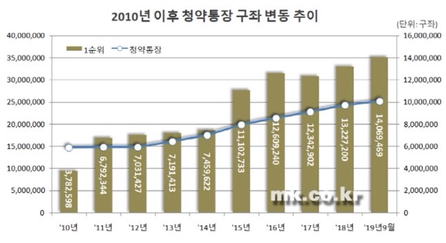 갈수록 청약 계좌의 변동 폭은 크게 늘어나고 있으니, 아래의 표를 참고하길 바란다.