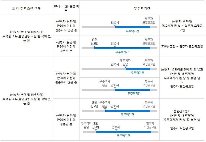 기혼자인 경우 혼인신고일 기준 무주택자 기간을 산정한다.
