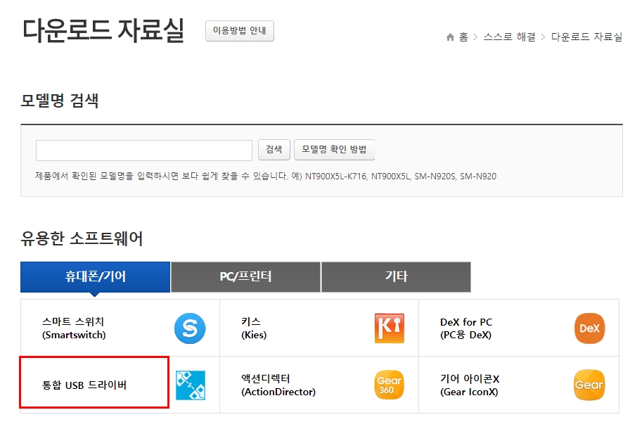 삼성전자는 서비스 홈페이지를 통해 삼성이 제조, 판매하는 모든 삼성 스마트폰용 통합 USB 드라이버를 만들어 배포하고 있다.