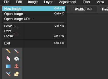 해당 사이즈를 확인했다면, [file] > [new image] 를 클릭한다.