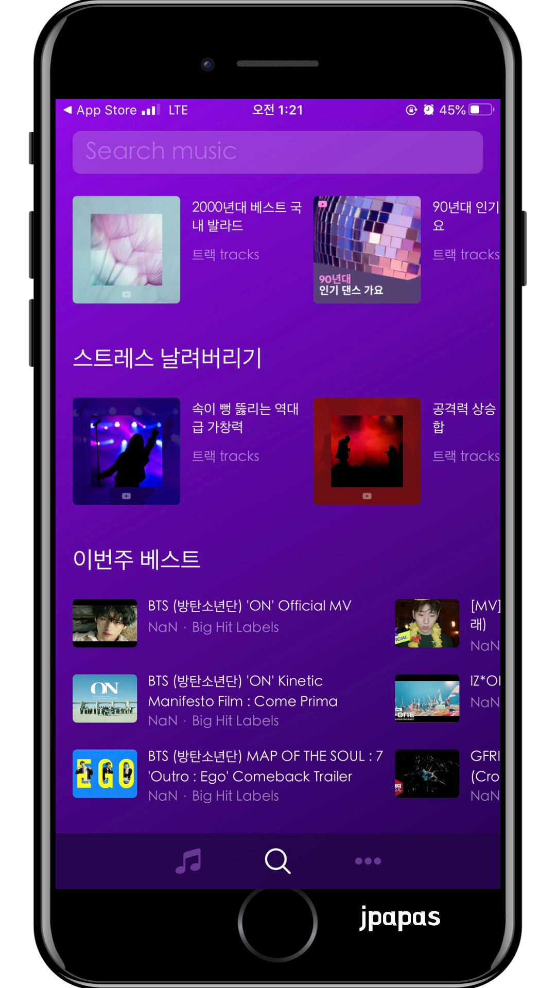바로 아래 백그라운드 실행이 되는 음악 어플 music pro - music and podcasts 아직 안 받았다면 바로 받아보아라.