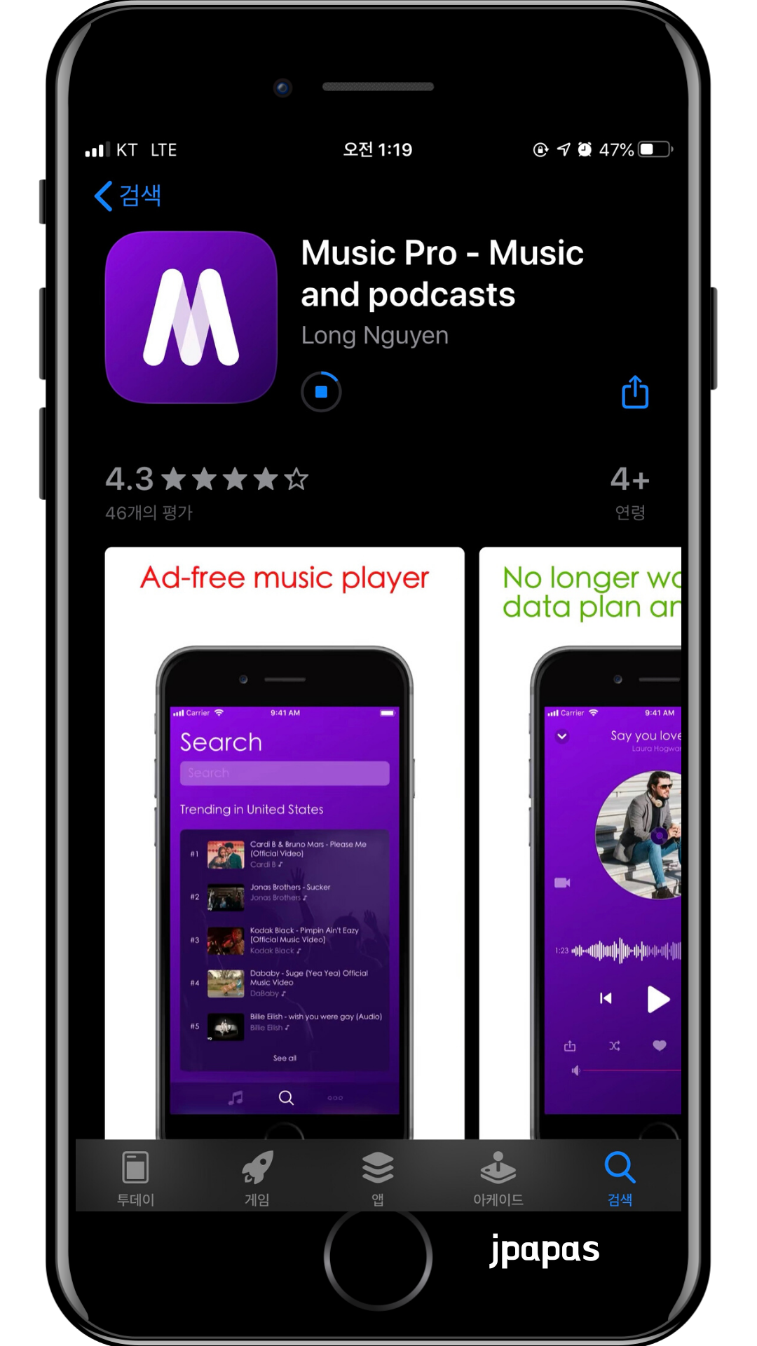 앱스토어에서 music pro - music and podcasts 라고 검색을 하면 해당 어플을 찾을 수 있다. 바로 다운을 받아보자. 벌써부터 두근, 두근!!!! 진짜 기대 100프로 아니 200프로 해도 좋다.