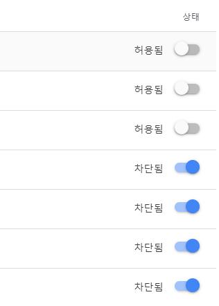 보일것이다. 차단 관리를 클릭했다면, 이후 모든 사이트를 클릭