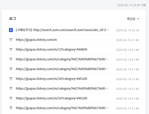 우연히 블로그 로그 내용을 보다가 로그 이력에