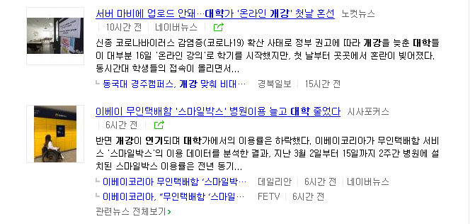 코로나로 인해 대학들이 개강 연기 1~2주 정도 하겠다고 하며, 온라인 수업으로 강의를 대체해서