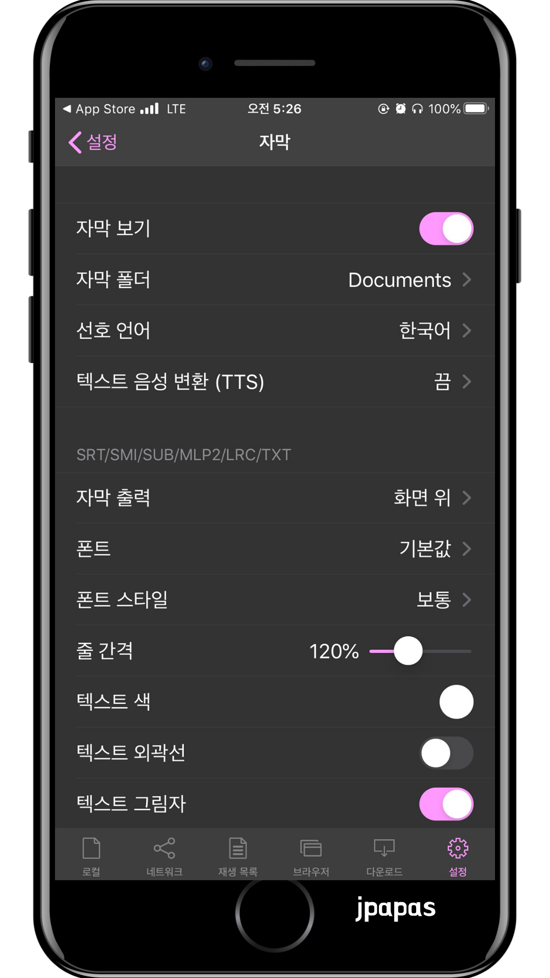 지원 자막 SMI, SRT, SSA, IDX, SUB, LRC, SUP, MLP2 etc.