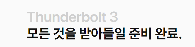 맥북 에어 2020은 업계 표준인 USB-C포트를 장착하여, 초고대역폭의 속도와 성능을 최대로 발휘할 수 있는 장점들로만 합쳐진, Thunderbolt 3는 모든 면에서 한층 업그레이드된 범용 포트라 할 수 있다. 맥북 에어 2020에는 두 개의 포트를 사용할 수 있다. Thunderbolt 3는 커넥터 하나로 데이터 전송, 충전, 화면 출력이 모두 가능하고, Thunderbolt 2보다 2배 나 더 커진 대역폭으로 최대 40Gb/s의 처리량을 자랑한다. 지금껏 사용했던 라이트닝 케이블을 이제 사라지고, 맥북 에어 2020에도 새로운 시대가 열린 것이다. 게다가 Thunderbolt 3는 리버서블 디자인이기 때문에 바로 꽂거나, 뒤집어서 꽂아도 전혀 문제가 없다.