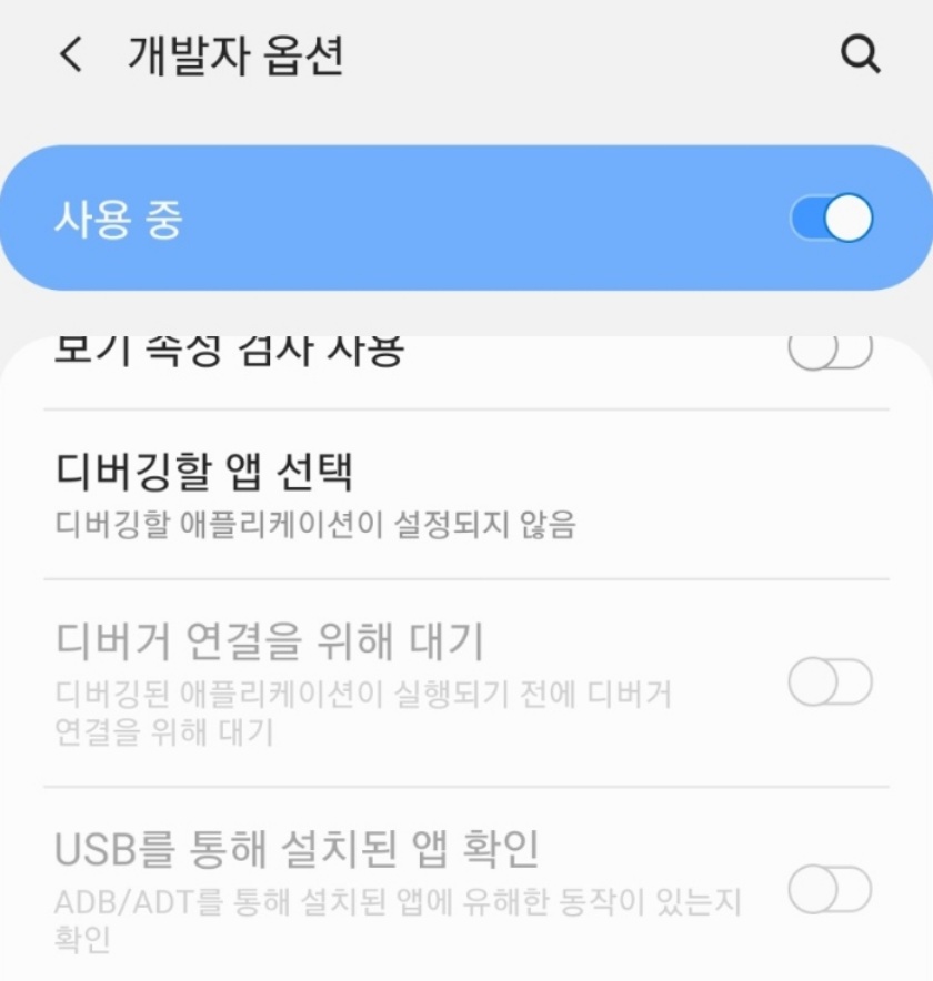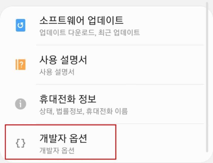 4. 개발자 옵션으로 진입한다.
