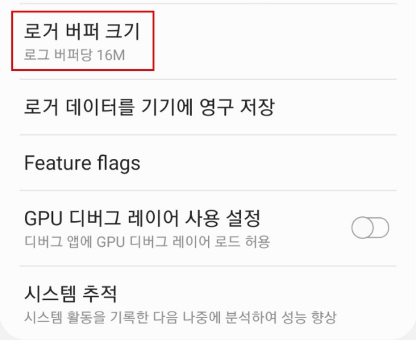 5. 로거 버퍼 크기를 로그 버퍼당 16M로 변경해준다.