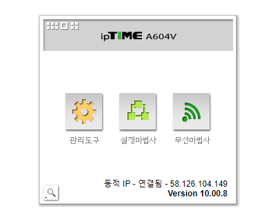 로그인을 하게되면 이렇게 창이 뜹니다. 이게 바로 iptime 공유기 초기화 후에 꼭 해주어야 하는 부분이기 때문에 넘기지 말아 주시기 바랍니다. 여기서 딱 두 가지 [설정 마법사], [무선 마법사] 두 개만 실행해 주신 다음, 하라는 데로 따라 해 주시면 됩니다.