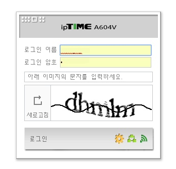 로그인을 위해서 이렇게 창이 뜨게 됩니다. 위에는 자신의 iptime 공유기 모델명 이 나오게 됩니다. 여기에 나오는 로그인 이름, 그리고 로그인 암호는 초기화 시에 모두 admin으로 바뀝니다. (모델에 따라 상이할 수 있습니다.) 로그인을 진행해주세요.