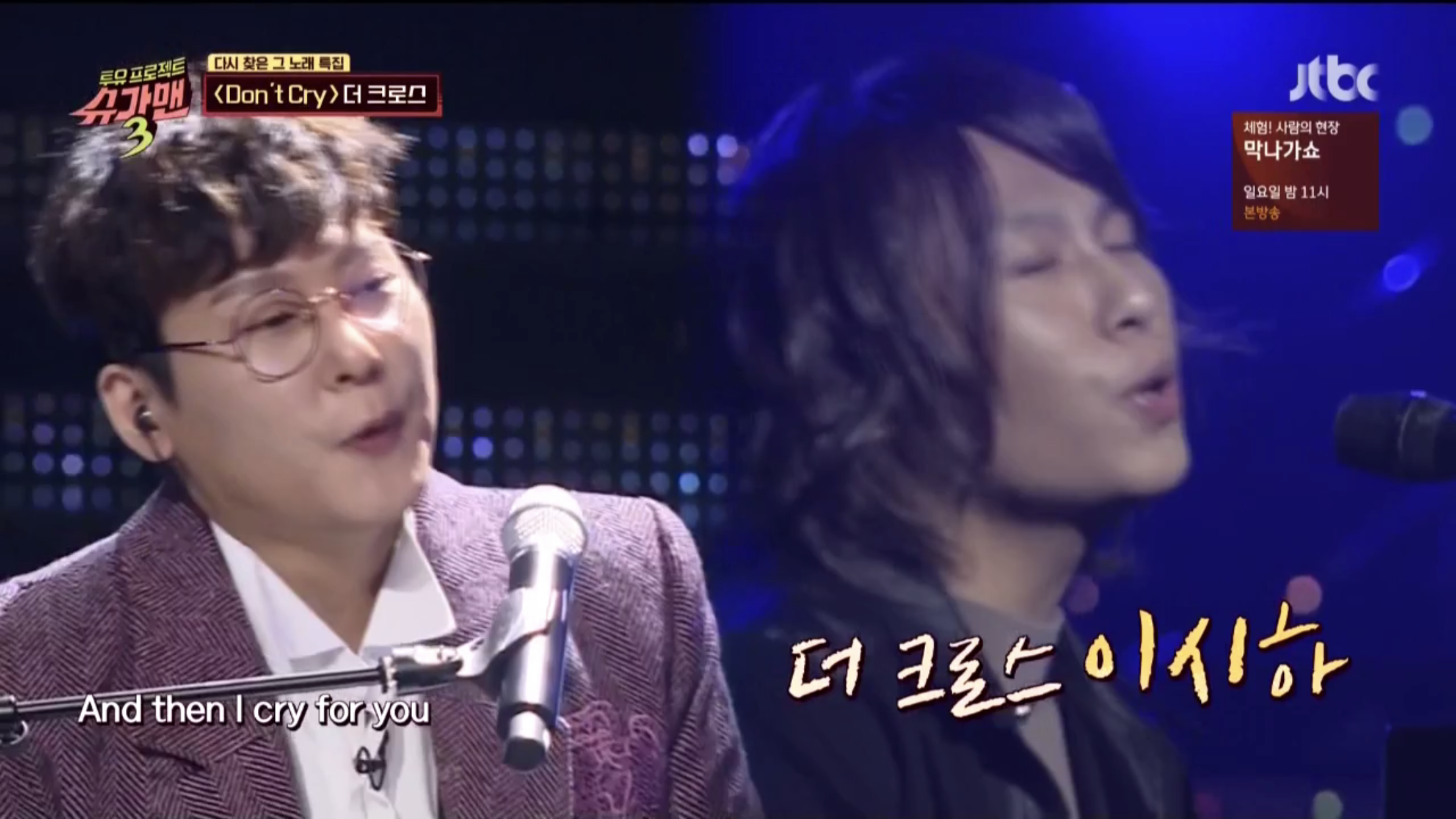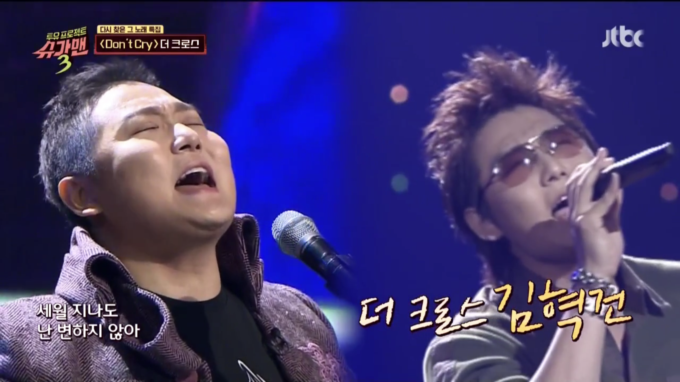 이후, 휠체어를 타고 무대에 등장해 17년 전 발표했던, 많은 사랑을 받았던 노래 ‘Don’t Cry’의 고음을 재현하는 모습에 감동을 받았으며, 같이 참여한 출연자들도 눈물을 훔쳤다.