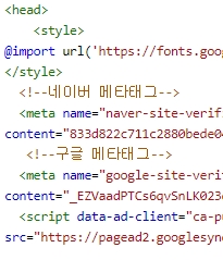 에 넣을 때 <!--구글 메타태그-->라는 문구를
