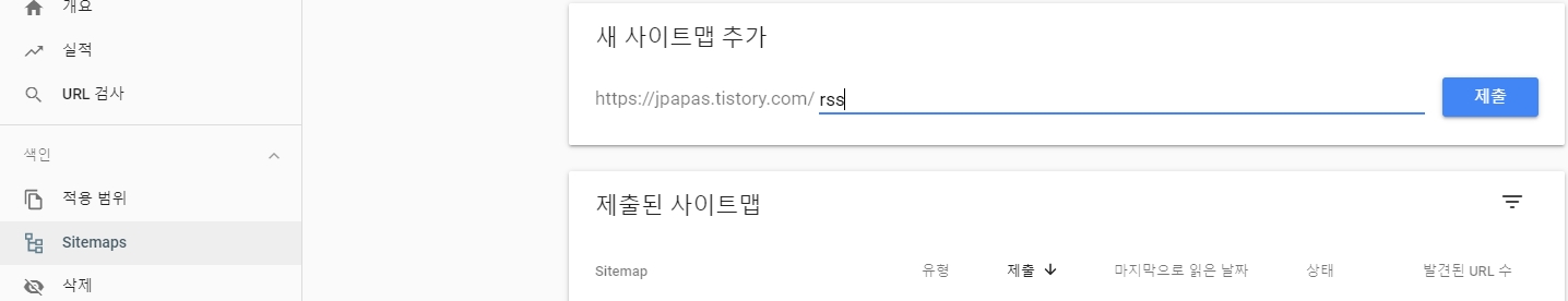 사이트 주소 뒷부분에 rss만 입력해서 제출하면 끝난다!