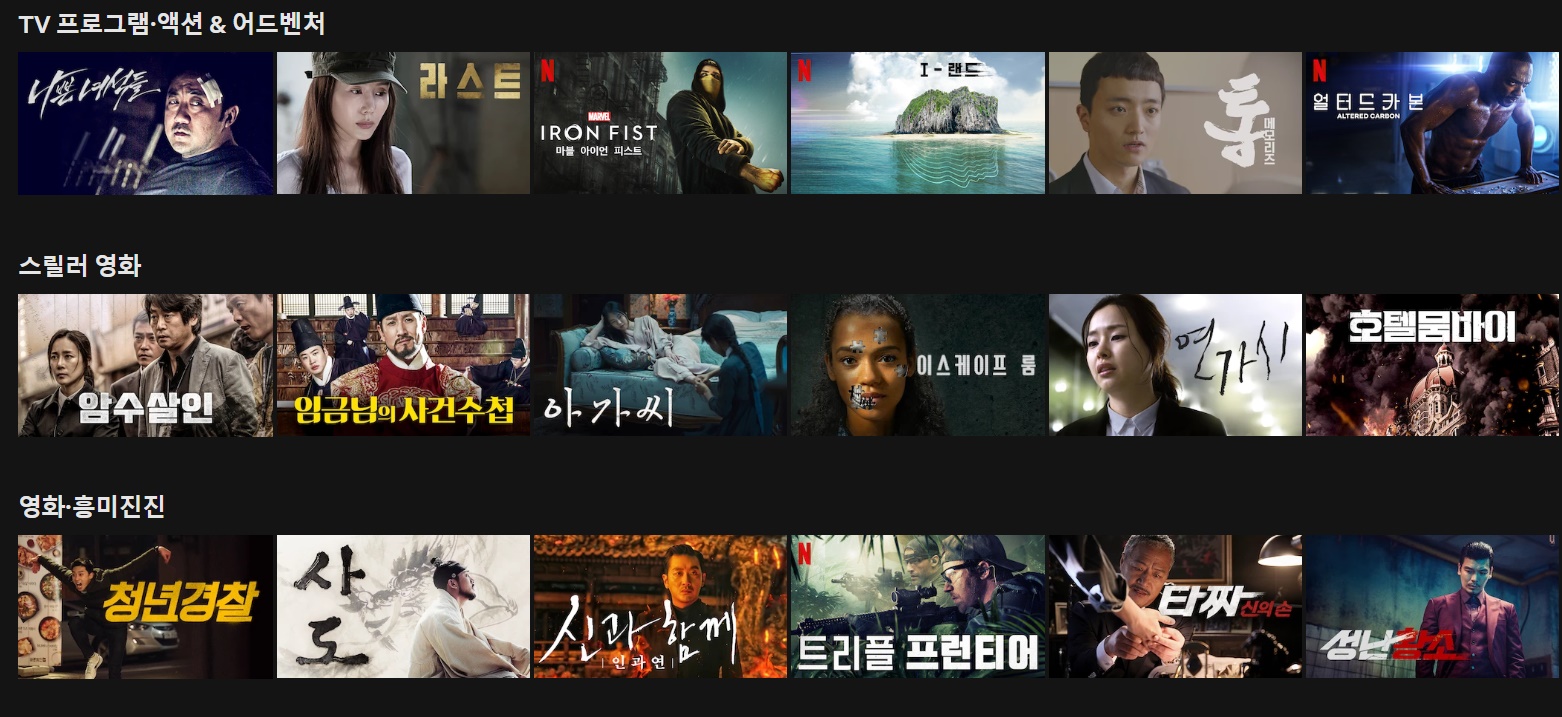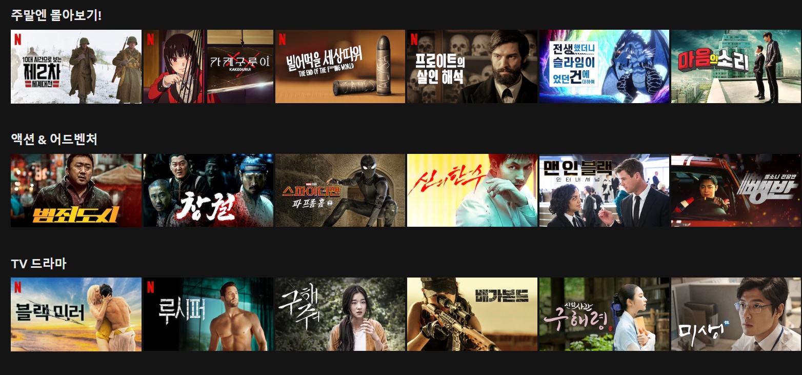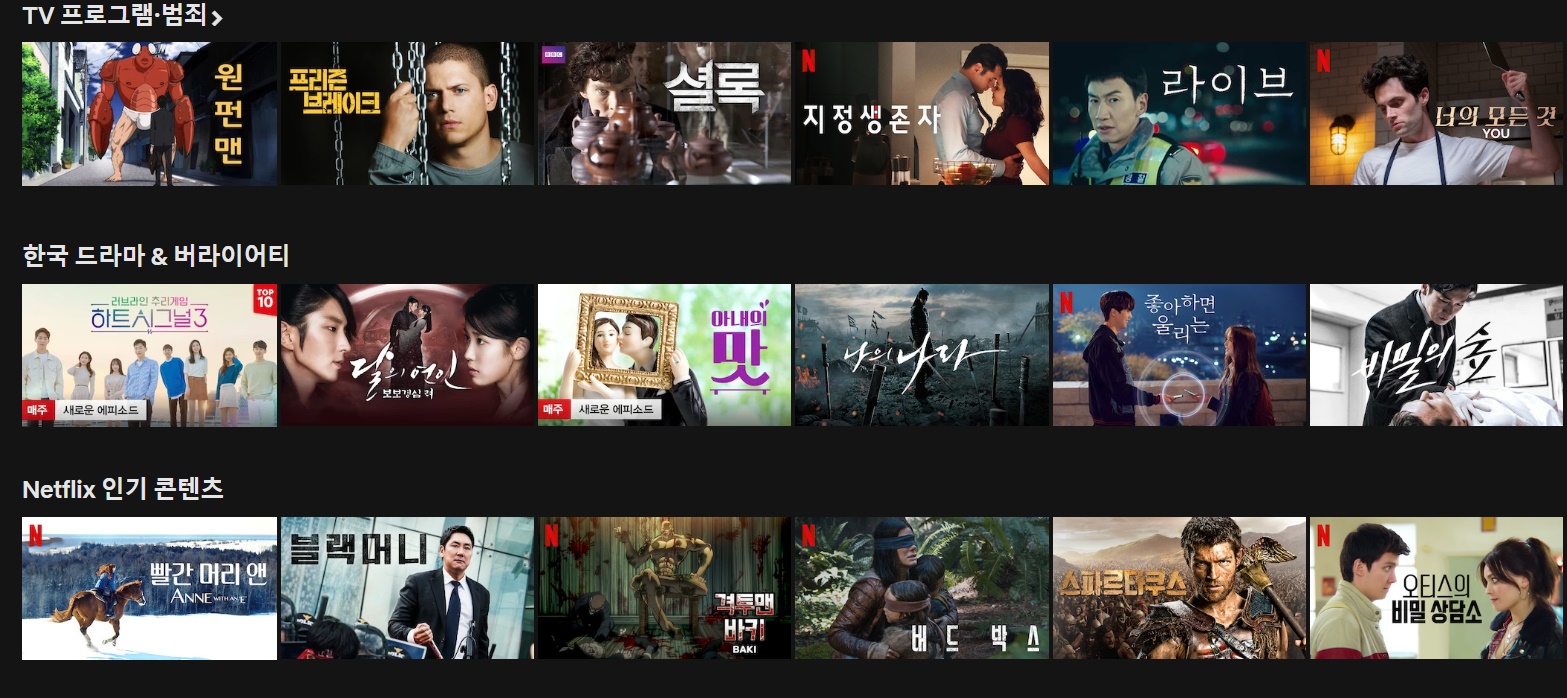 위와 같이 정말 다양한 서비스가 존재하니, 넷플릭스를 한번 이용해 본 사람이라면, 누구나 넷플릭스의 매력에 푹 빠지리라 생각한다. 본인이 넷플릭스를 사용하는 가장 큰이유는 넷플릭스 오리지널 드라마 때문이다.