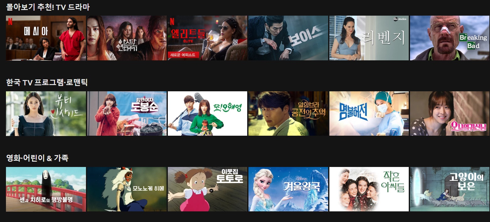 또한, 넷플릭스에서만 만날수 있는 다양한 영상들이 존재하니, 넷플리스에서 다양한 영상들을 시청해보다 보면, 평소에 보지 못하던 영상들도 알게 되어 매우 뜻깊은 시간이 되리라 생각한다.