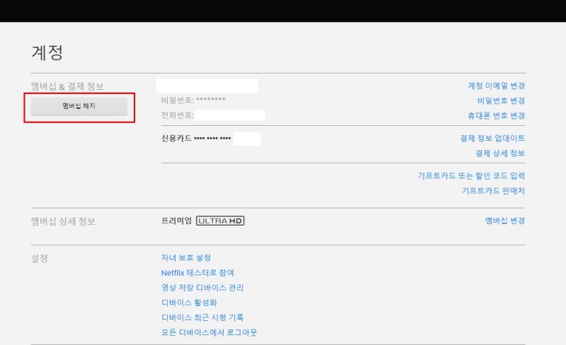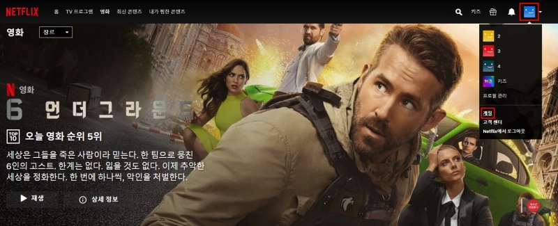 넷플릭스 해지 방법은 위처럼 해당 프로필 아이콘을 눌러서 진입한다. 이후 방법은 아래 스크린샷을 보고 따라하면 바로 처리된다.