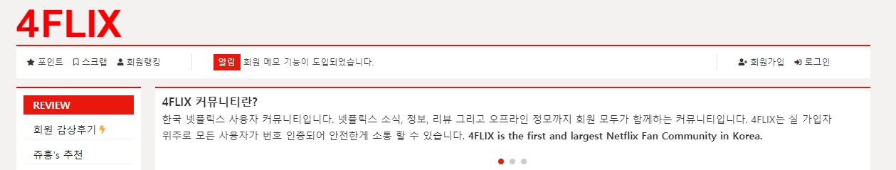 이미 넷플릭스 이용자라면 넷플릭스 가겨에 대한 부담 때문에, 4 플릭스(4 flix), 또는 포플릭스 라고 불리는 사이트를 너무나도 잘 알겠지만, 이제 막 가입한 사람이라면, 해당 커뮤니티에 가입하면 좋을 것이라 생각한다. 넷플릭스의 정보도 발 빠르게 전달해준다.