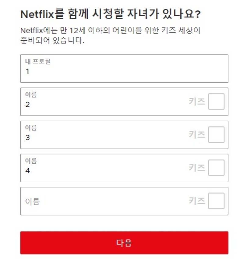가입하면, 어떤 디바이스를 선택할것인지, 프로필 등록을 선택해서 개개인별로 사용할 수 있는 프로필을 선택하는 사항도 나온다. 그리고, 어린아이들도 보는 것을 고려해 키즈 콘텐츠만 나오게 할 수 있는 선택도 가능하다. 모든 것을 선택하면, 개개인의 취향을 파악하는, 선택 시간이 온다.
