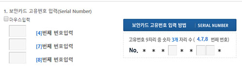 은행에 따라서 입력된 휴대폰 번호 인증을 하기도 하는데 신협은 해야 한다고 되어 있네요. 다음으로 보안카드 일련번호를 잘 확인해서 입력해 줍니다.