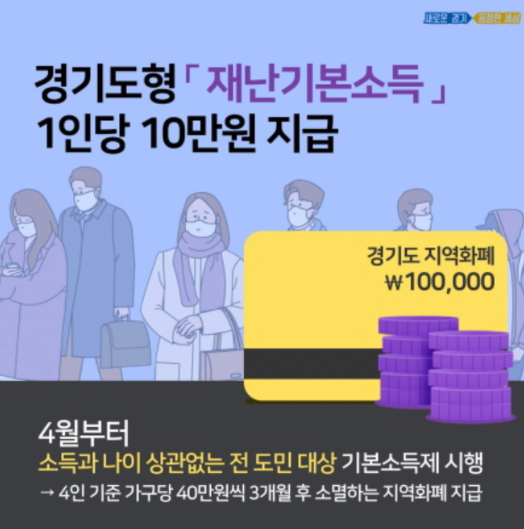 지급 대상자는 3월24일 0시 기준 경기도 거주자이며, 나이, 소득, 자산, 성별, 직업 등에 관계없이 지급된다.