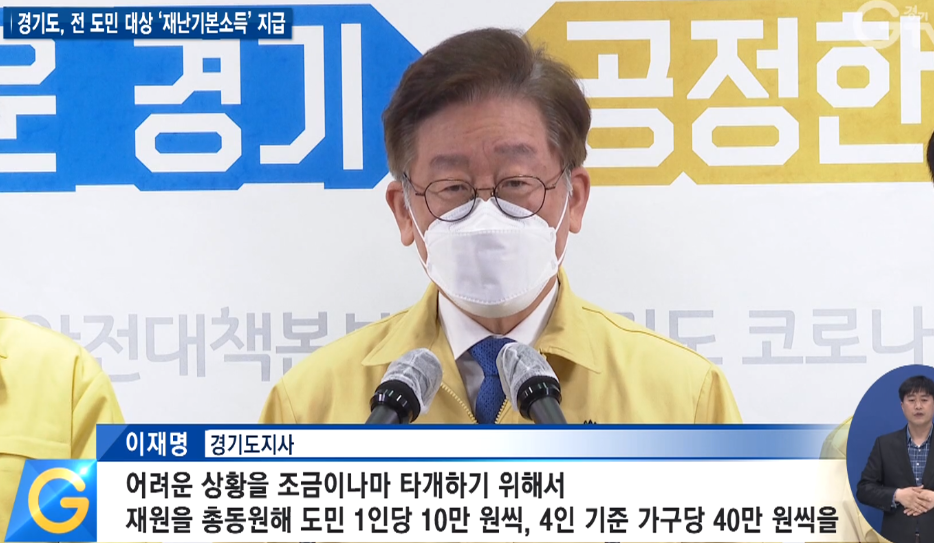 이 지사는 "도청은 경기도 재난에 대한 기본소득과 정부 긴급재난 지원 등을 최대한 빠른 시간 내에 제공할 것"이라고 말했다. 이어 "주민의 소비 역량을 높이고 골목상권에서 즉시 소비시켜 소상공인의 매출을 수혈하고 경기순환의 첫바퀴를 돌리겠다"고 덧붙였다.