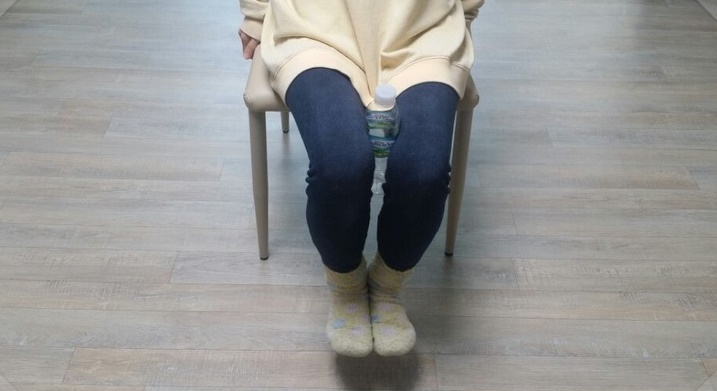 이 동장은 많은 분들에게 이미 이슈가 되는 동작인데요. 5cm 정도 두께의 책이나, 책이 없다면 아무거나, 무릎 사이에 끼고 떨어지지 않게 유지하는 것입니다. 은근히 힘이 많이 들어가기 때문에 운동 효과가 좋습니다.