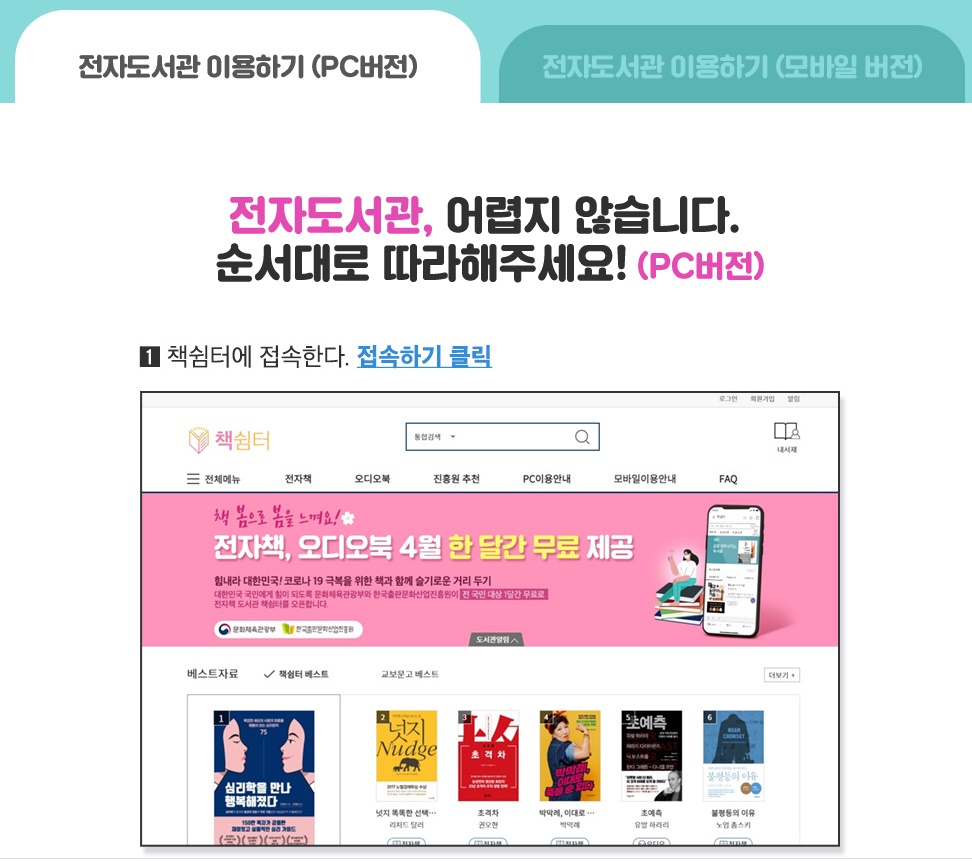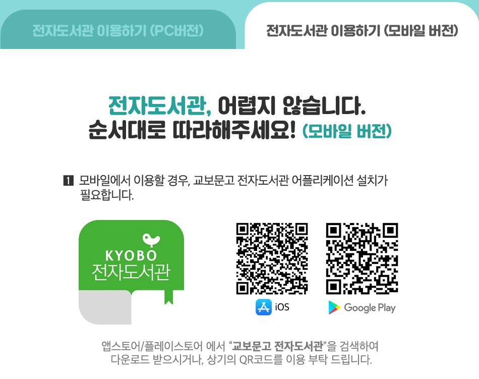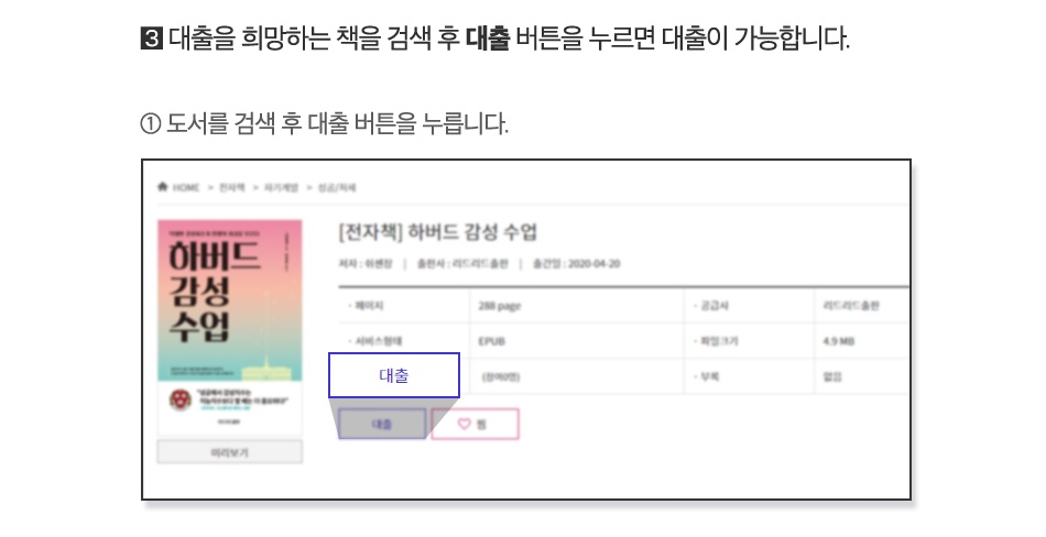 교보문고 전자도서관의 사용법은 홈페이지에 자세하게 나와있는데, 해당 내용을 캡처해서 가져왔으니, 아래에서 확인하길 바란다.
