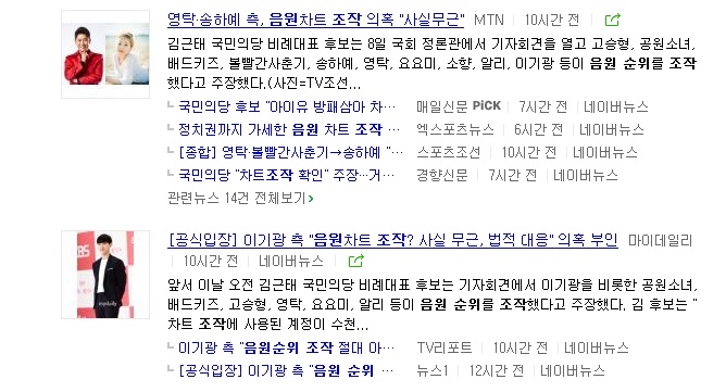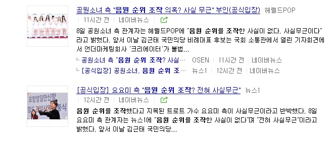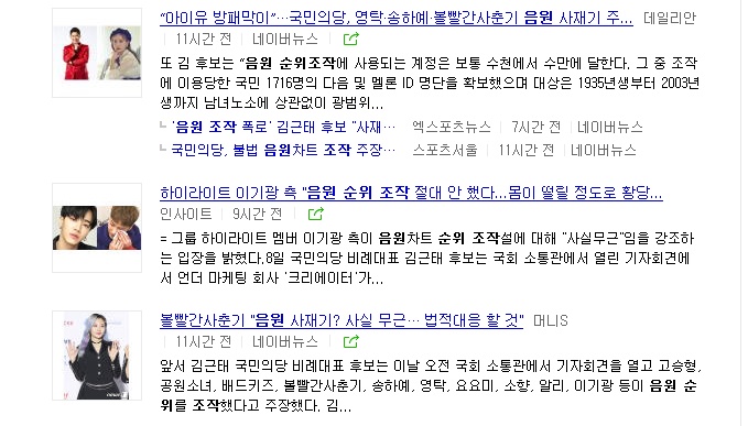 국민의당은 전일인 8일 음원차트 순위 조작과 관련해 실제 차트 조작 사실을 확인했다고 폭로했다.