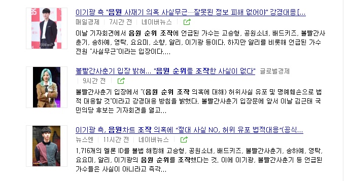 이들이 조작한 것으로 확인됐다고 밝힌 가수는 영탁, 볼빨간사춘기, 송하예, 요요미, 소향, 알리, 이기광, 고승형, 공원소녀, 배드키즈 등이었다.