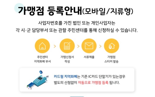 오프라인 신청으로 인한 선불카드 방식은 이달 20일부터 오는 7월 31일까지 신분증을 지참하여 주소지 동주민센터 또는 관내 농협은행 지점에서 신청할 수 있다.