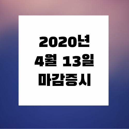 | 2020년 4월 14일 마감 시황 (0) | 2020.04.14 |