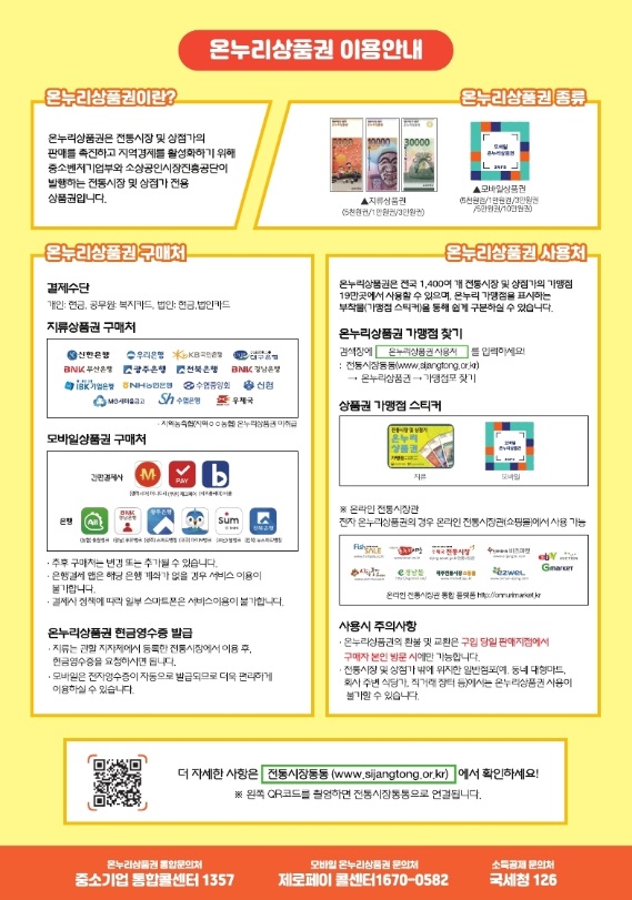 온누리 상품권 통합문의처 : 중소기업 통합콜센터 (☎1357)