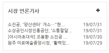 위 리스트에서 '가맹점포' 버튼을 누른후, 지역을 선택해주면, 해당 시장의 점포들 중 상품권을 받아주는 가게들 목록이 나온다.