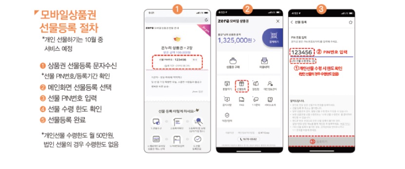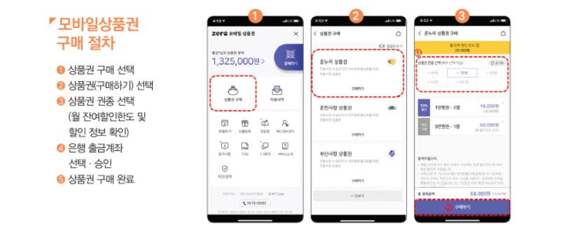 모바일상품권은 농협 올원뱅크, 경남 투유뱅크, 광주 스마트뱅킹, 대구 아이M뱅크, 부산 썸뱅크, 전북 뉴스마트뱅킹, 갤럭시아 머니트리, 비즈플레이 비플, 쿠콘 체크페이 9개 애플리케이션을 통해 구매할 수 있다.