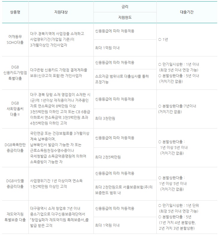 | 사회적경제기업 전용자금 | (직접대출) 협동조합, 사회적기업(예비사회적기업 포함), 마을기업, 자활기업 |