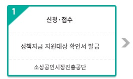* 위 자금의 경우 별도의 신용보증기관 및 은행 방문 없이 소상공인시장진흥공단 지역센터에서 신청·접수 및 평가를 통해 대출실행