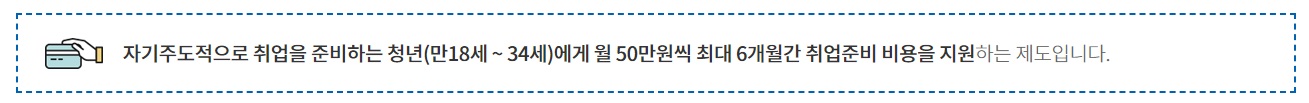 간략히 요약하자면 취업 준비를 하고 있는 청년 취업준비생(만 18세~ 34세까지)들의 어려움을 덜어주기 위해 2019년부터 시행되고 있는 사업 정책으로, 일정 요건을 갖춘 청년에게 6개월 동안 월 50만 원씩 지급하는 것이 청년 구직활동지원금 제도이다. 청년 구직활동지원금은 2018년 3월 청년일자리대책에서 도입이 확정된 후 국회 논의 등을 거쳐 2019년 신규 사업으로 예산이 편성되었다.