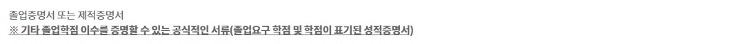 ※ 기타 졸업학점 이수를 증명할 수 있는 공식적인 서류(졸업요구 학점 및 학점이 표기된 성적증명서)