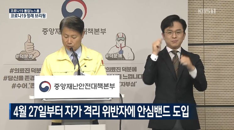 정부가 코로나19 자가격리 위반자에 대해 27일부터 전자손목밴드인 ' 안심밴드 '를 도입한다고 발표했다.