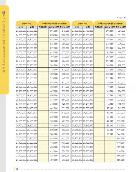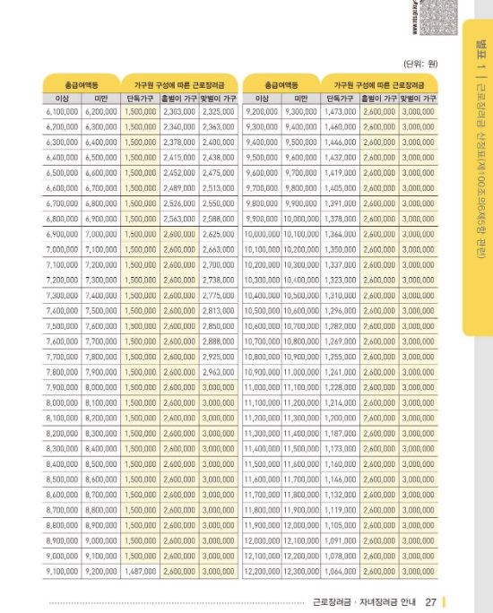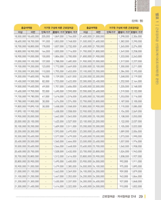 근로소득, 종교인 소득 또는 사업소득이 있는 가구로써 금액은 아래와 같다.
