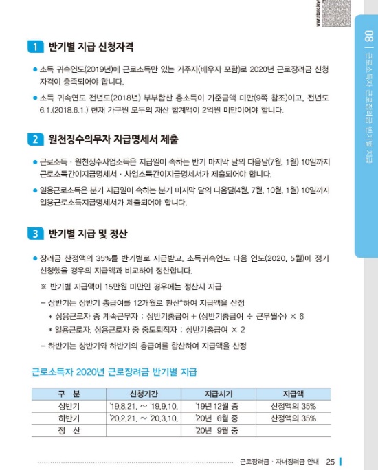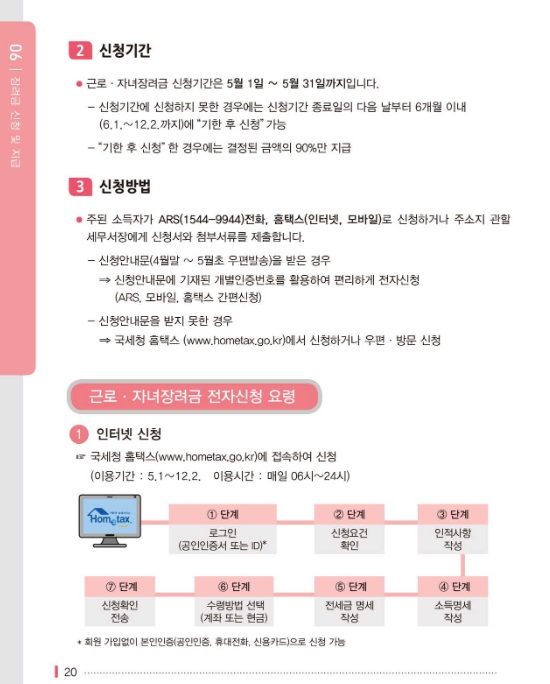 이날 국세청은 “일하는 저소득 가구를 지원하기 위해 2019년에 근로·사업소득 등이 있는 568만 가구 중 365만 가구에게 5월에 장려금을 신청하도록 안내했다”고 밝혔으며, 나머지 203만 가구는 2019년 상·하반기분을 이미 신청한 가구로, 5월 자녀·근로장려금 신청 대상이 아니다.