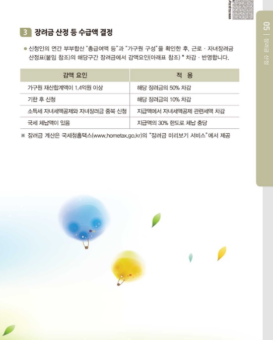 국세청은 저소득 가구가 신종 코로나바이러스 감염증(코로나19)을 극복할 수 있도록 장려금을 신속하게 지급한다는 방침이다. 연간 근로장려금은 가구별 최대 300만 원, 자녀장려금은 자녀 1인당 최대 70만 원이다.