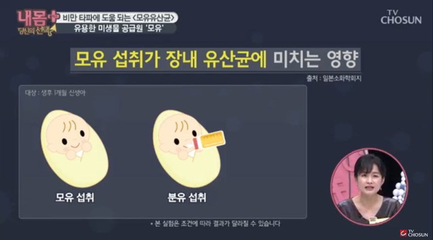 쥐를 통한 실험 결과 - 실험 쥐에서 고열량식을 제공한 뒤 한 쥐에게는 모유유산균을 투입하자 놀랍게도 체중이 감소하는 것을 발견했다. 2008년 발표된 미국 베일러 의대 연구에 의하면 모유를 먹고 자란 아기들은 성장할수록 장내 유익균이 증가한다고 한다.
