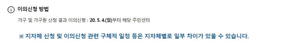 3월 29일 이후 발생한 가족관계 변동 사항은 가구 기준에 반영돼있지 않으므로 4일 이후 주민센터를 방문해 이의신청해야 한다.