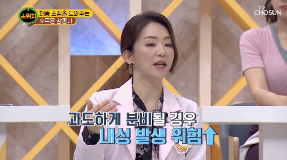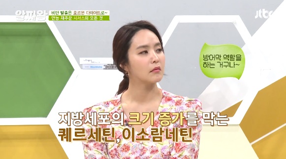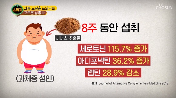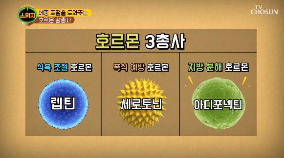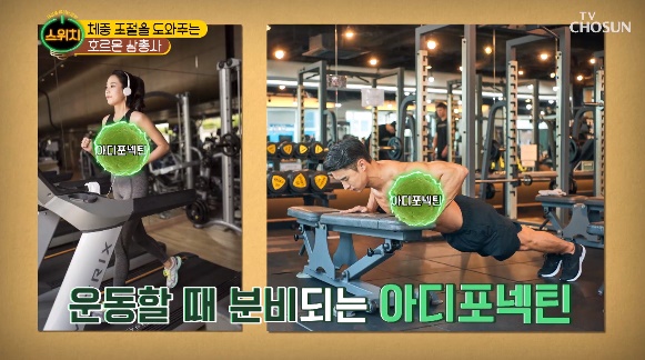 아디포넥틴은 지방세포에서 분비되는 단백질이다. 비만 치료는 물론 인슐린 저항성 개선 및 동맥경화를 막는데도 기능을 하는 호르몬이다. 또한, 렙틴은 식욕 조절 호르몬인데 비만인 사람일수록 높게 나타나는데, 9%나 억제되어 식욕이 저하된다는것을 알수 있다.