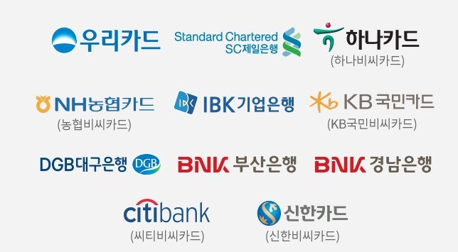 - SC, IBK기업, 우리, 대구, 부산, 경남은행 카드