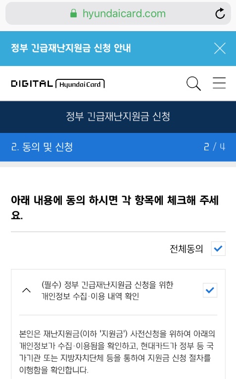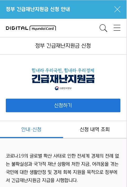 마지막으로 현대카드 긴급 재난지원금 신청 사이트는 아래 링크에 첨부해 두었으니, 접속해서 신청하길 바란다.