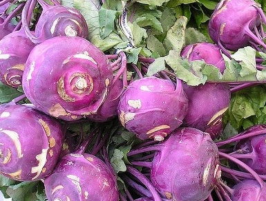 잎은 쌈채소로 즐기며 줄기는 주로 샐러드로 이용하는 콜라비, 주로 뿌리를 먹는 콜라비
