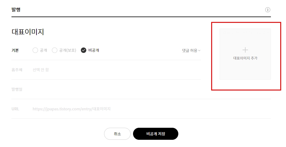 해당 위치에 대표 이미지 추가 버튼을 누른 후 추가 후 발행만 하면 끝난다. 모두 다 알 것 같지만, 모를 수도 있는 일이라 공유한다. 오늘 하루도 알차게 파이팅!